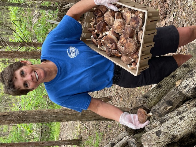 Our recent rains and warm temperatures gave the signal to fruit to our shiitake logs, and hundreds of pounds popped out over the weekend. So attention grillers: we have plenty of these incredibly tasty mushrooms available now! Check the shiitake recipes on our recipe page.